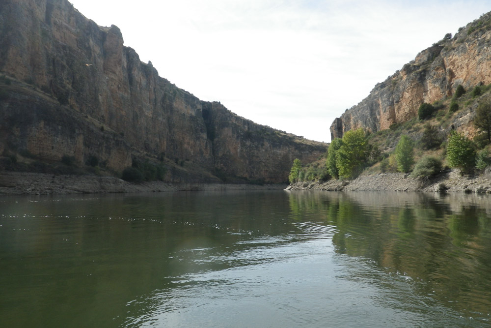 Las Hoces del Duratón son un bellísimo cañón al norte de Madrid. El Duratón, un afluente del Duero, está embalsado a su paso por esta garganta, lo que permite remar en ambas direcciones. El punto donde se embarca está cerca del pueblo Sebúlcor. A la presa hay unos cuatro kilómetros. En las rocas vive y cría una colonia de buitres leornados. Por esta razón, se solo se puede remar entre el 1 de agosto al 31 de diciembre, cuando ya ha terminado la época de cría. Si no tienes canoa, hay varias empresas que alquilan piraguas de plástico. Mira en internet.
