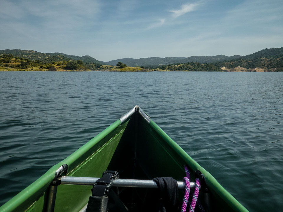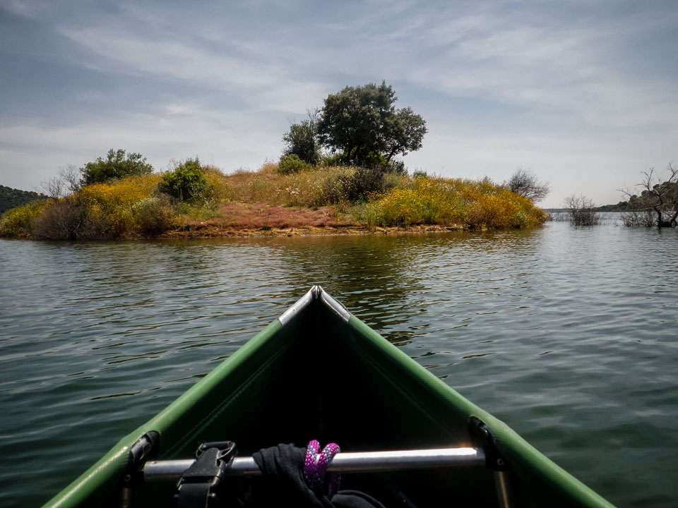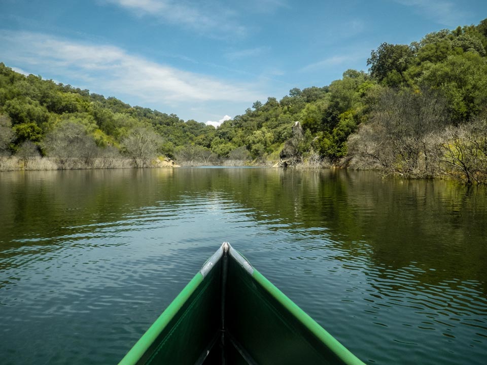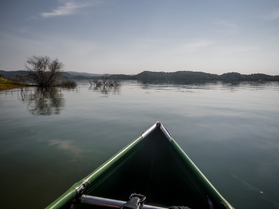 El Embalse de la Breña está situado a una media hora de coche, al oeste, de la ciudad andaluza de Córdoba. Es un pantano del Río Guadiato, un afluente del Guadalquivir. Una de las las entradas al agua se encuentra al final del camino que baja del Camping La Breña. El pantano, con su superficie de 587 hectarias, invita a surcar sus aguas durante largas jornadas. Nosotros remamos hasta una de las dos colas del pantano, allí donde desemboca el Río de la Cabrilla.