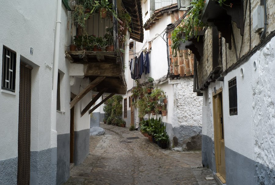 La pequeña ciudad en el sur de la provincia de Cáceres tiene una de las juderías mejor conservadas. Callejones con muchos recobecos suben y bajan la colina con sus casas construidas con madera de castaño y ladrillos de barro secados al aire. Muchas puertas llevan hasta hoy la estrella de David como adorno. A la sombra de la iglesia de Santa María, cuyos orígenes se remontan a los Templarios medievales, vivían en aquel entonces 45 familias judías.